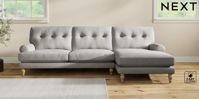 Add charm to your living space with the Erin Button Back Sofa. Its elegant scroll arms and classic button-back cushions create a timeless look. You'll love its "Relaxed Sit" cushions, specially designed for ultimate comfort. These cushions are made with clever foam and fibre, giving you a wonderfully soft, plump feel. To keep them looking their best, simply plump and turn them regularly. Plus, you can make the Erin your own by choosing from a huge range of coloured fabrics.