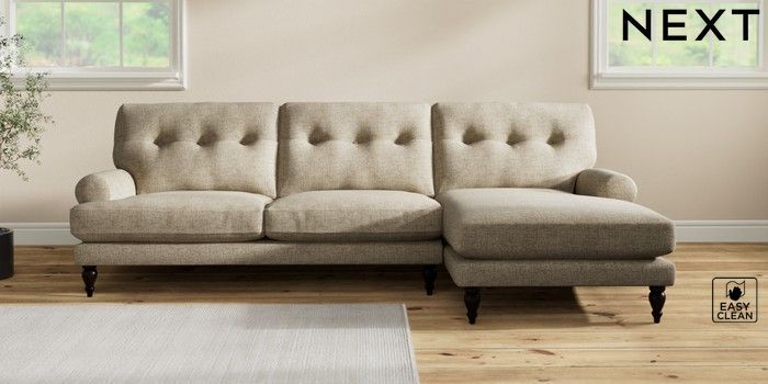 7.2.10 Erin Buttoned Back Deep Relaxed Sit Medium Sofa Chaise - Right Hand Woven Chenille Easy Clean Mid Natural High Classic Turned - Dark | Made Click here to use our website with more accessibility support, for example screen readers