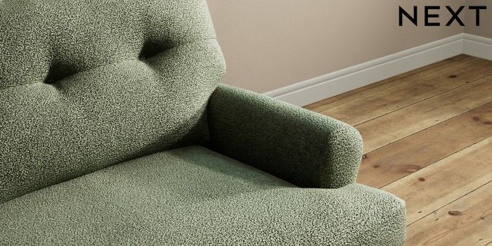 7.2.10 Erin Buttoned Back Deep Relaxed Sit Snuggle Boucle Chenille Dark Moss Green High Classic Turned Brass Castor - Light | Made Click here to use our website with more accessibility support, for example screen readers