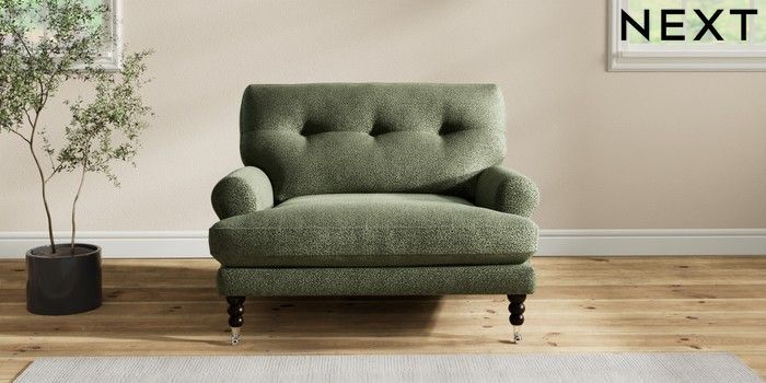 7.2.10 Erin Buttoned Back Deep Relaxed Sit Snuggle Boucle Chenille Dark Moss Green High Classic Turned Chrome Castor - Dark | Made Click here to use our website with more accessibility support, for example screen readers