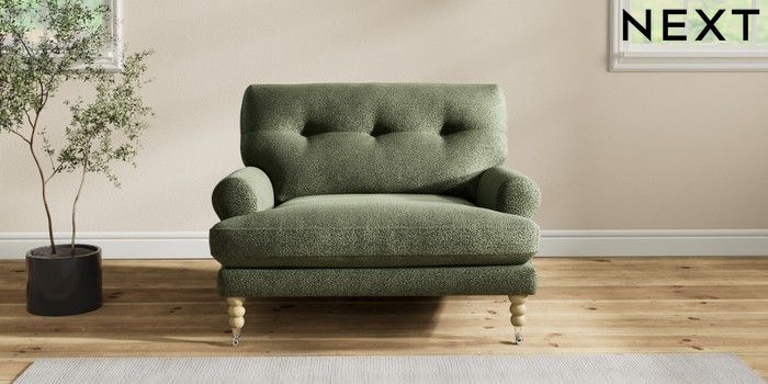 7.2.10 Erin Buttoned Back Deep Relaxed Sit Snuggle Boucle Chenille Dark Moss Green High Classic Turned Chrome Castor - Light | Made Click here to use our website with more accessibility support, for example screen readers