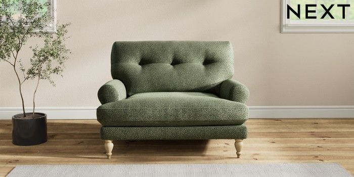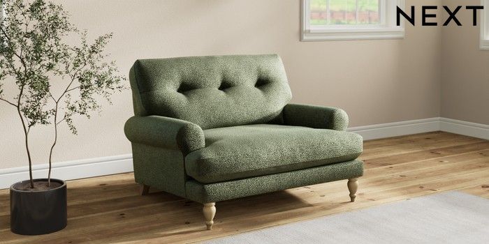 7.2.10 Erin Buttoned Back Deep Relaxed Sit Snuggle Boucle Chenille Dark Moss Green High Classic Turned - Light | Made Click here to use our website with more accessibility support, for example screen readers