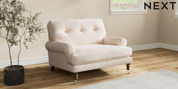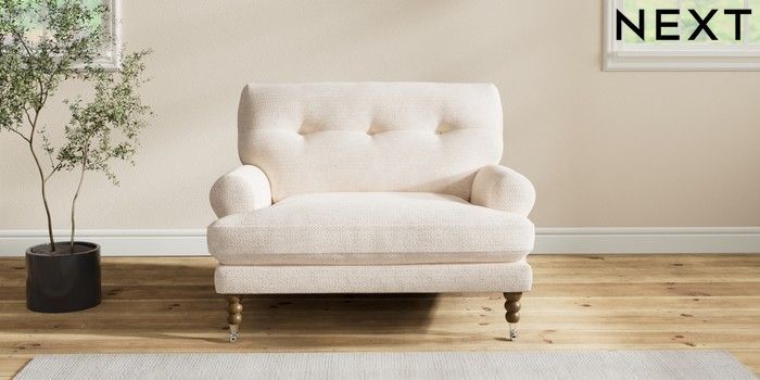 7.2.10 Erin Buttoned Back Deep Relaxed Sit Snuggle Boucle Chenille Oyster High Classic Turned Chrome Castor - Mid | Made Click here to use our website with more accessibility support, for example screen readers