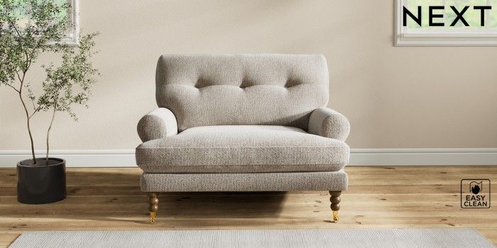 7.2.10 Erin Buttoned Back Deep Relaxed Sit Snuggle Chunky Boucle Easy Clean Dove High Classic Turned Brass Castor - Mid | Made Click here to use our website with more accessibility support, for example screen readers