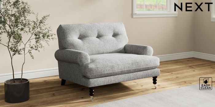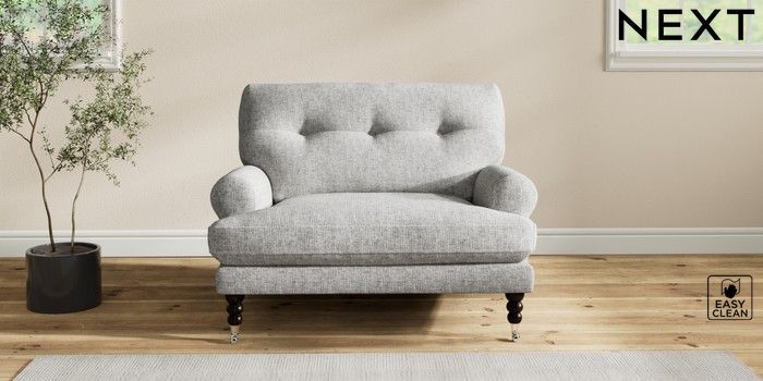 7.2.10 Erin Buttoned Back Deep Relaxed Sit Snuggle Chunky Boucle Easy Clean Light Grey High Classic Turned Chrome Castor - Dark | Made Click here to use our website with more accessibility support, for example screen readers