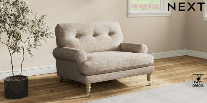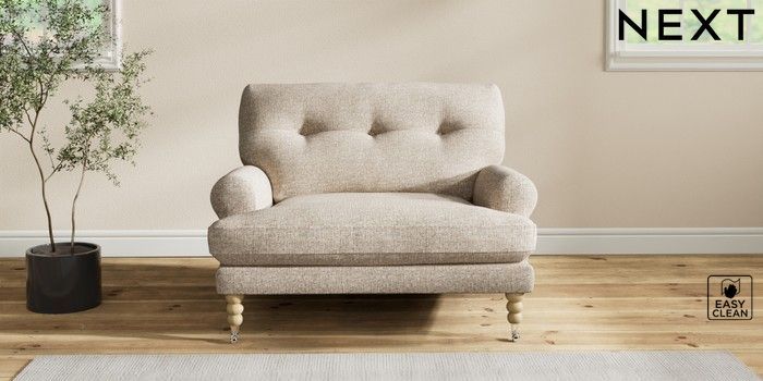 7.2.10 Erin Buttoned Back Deep Relaxed Sit Snuggle Chunky Boucle Easy Clean Mid Natural High Classic Turned Chrome Castor - Light | Made Click here to use our website with more accessibility support, for example screen readers