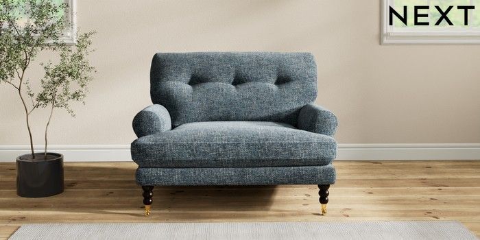 7.2.10 Erin Buttoned Back Deep Relaxed Sit Snuggle Chunky Chenille Dark Navy Blue High Classic Turned Brass Castor - Dark | Made Click here to use our website with more accessibility support, for example screen readers