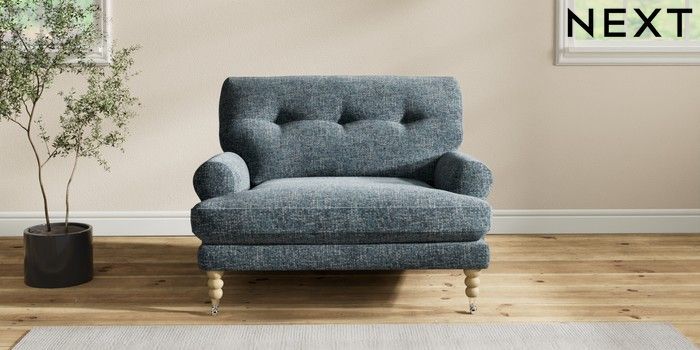 7.2.10 Erin Buttoned Back Deep Relaxed Sit Snuggle Chunky Chenille Dark Navy Blue High Classic Turned Chrome Castor - Light | Made Click here to use our website with more accessibility support, for example screen readers