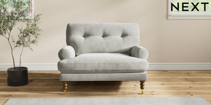 7.2.10 Erin Buttoned Back Deep Relaxed Sit Snuggle Chunky Chenille Light Grey High Classic Turned Brass Castor - Mid | Made Click here to use our website with more accessibility support, for example screen readers