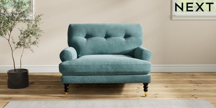 7.2.10 Erin Buttoned Back Deep Relaxed Sit Snuggle Chunky Chenille Mid Teal Green High Classic Turned Brass Castor - Dark | Made Click here to use our website with more accessibility support, for example screen readers