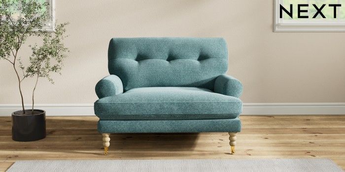 7.2.10 Erin Buttoned Back Deep Relaxed Sit Snuggle Chunky Chenille Mid Teal Green High Classic Turned Brass Castor - Light | Made Click here to use our website with more accessibility support, for example screen readers
