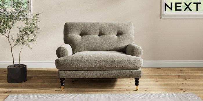 7.2.10 Erin Buttoned Back Deep Relaxed Sit Snuggle Chunky Marl Light Olive Green High Classic Turned Brass Castor - Dark | Made Click here to use our website with more accessibility support, for example screen readers