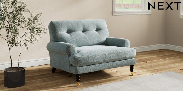 7.2.10 Erin Buttoned Back Deep Relaxed Sit Snuggle Chunky Marl Mid Blue High Classic Turned Brass Castor - Dark | Made Click here to use our website with more accessibility support, for example screen readers
