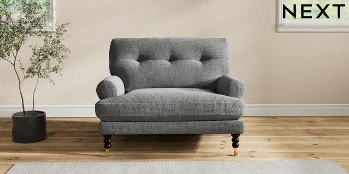7.2.10 Erin Buttoned Back Deep Relaxed Sit Snuggle Chunky Texture Dark Grey High Classic Turned Brass Castor - Dark | Made Click here to use our website with more accessibility support, for example screen readers