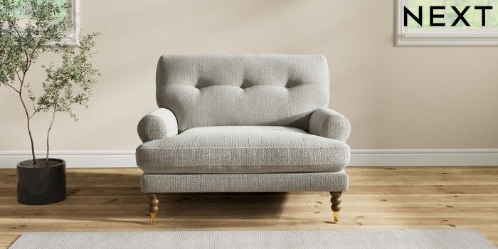 7.2.10 Erin Buttoned Back Deep Relaxed Sit Snuggle Chunky Texture Dove High Classic Turned Brass Castor - Mid | Made Click here to use our website with more accessibility support, for example screen readers