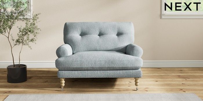 7.2.10 Erin Buttoned Back Deep Relaxed Sit Snuggle Chunky Weave Mid Blue High Classic Turned Chrome Castor - Light | Made Click here to use our website with more accessibility support, for example screen readers
