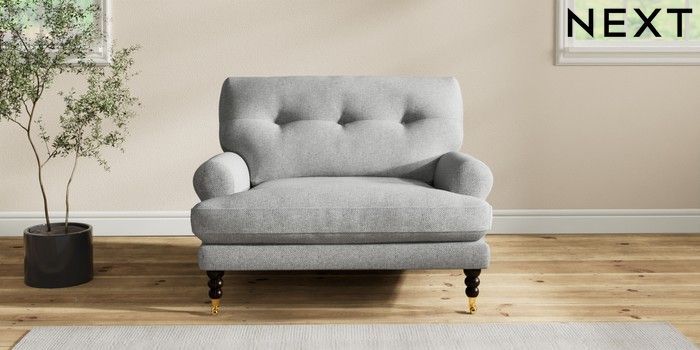 7.2.10 Erin Buttoned Back Deep Relaxed Sit Snuggle Chunky Weave Mid Grey High Classic Turned Brass Castor - Dark | Made Click here to use our website with more accessibility support, for example screen readers