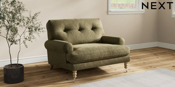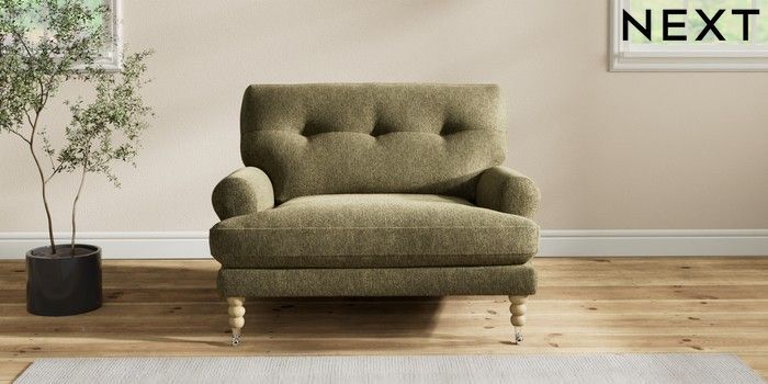 7.2.10 Erin Buttoned Back Deep Relaxed Sit Snuggle Cotswold Chenille Dark Green High Classic Turned Chrome Castor - Light | Made Click here to use our website with more accessibility support, for example screen readers