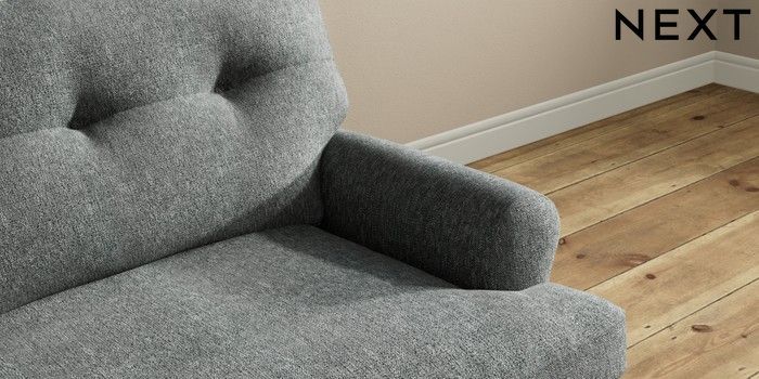 7.2.10 Erin Buttoned Back Deep Relaxed Sit Snuggle Cotswold Chenille Dark Grey High Classic Turned Brass Castor - Dark | Made Click here to use our website with more accessibility support, for example screen readers