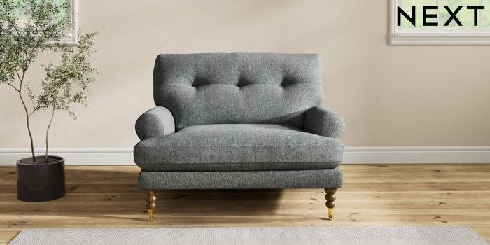 7.2.10 Erin Buttoned Back Deep Relaxed Sit Snuggle Cotswold Chenille Dark Grey High Classic Turned Brass Castor - Mid | Made Click here to use our website with more accessibility support, for example screen readers