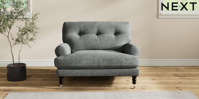 7.2.10 Erin Buttoned Back Deep Relaxed Sit Snuggle Cotswold Chenille Dark Grey High Classic Turned Chrome Castor - Dark | Made Click here to use our website with more accessibility support, for example screen readers