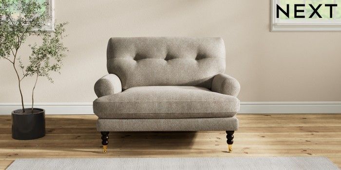 7.2.10 Erin Buttoned Back Deep Relaxed Sit Snuggle Cotswold Chenille Mid Mink Brown High Classic Turned Brass Castor - Dark | Made Click here to use our website with more accessibility support, for example screen readers