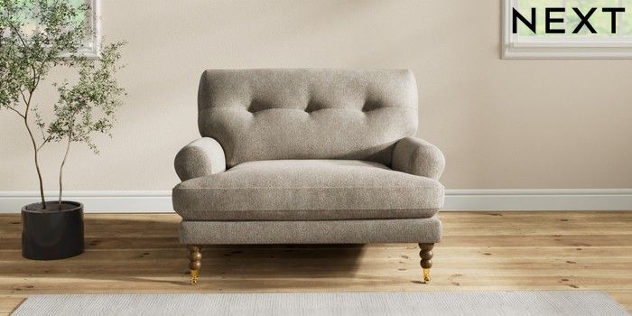 7.2.10 Erin Buttoned Back Deep Relaxed Sit Snuggle Cotswold Chenille Mid Mink Brown High Classic Turned Brass Castor - Mid | Made Click here to use our website with more accessibility support, for example screen readers