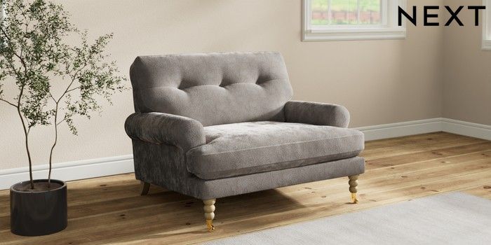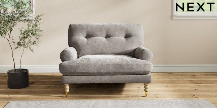 7.2.10 Erin Buttoned Back Deep Relaxed Sit Snuggle Distressed Velour French Grey High Classic Turned Brass Castor - Light | Made Click here to use our website with more accessibility support, for example screen readers