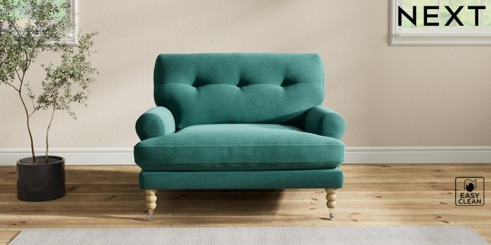 7.2.10 Erin Buttoned Back Deep Relaxed Sit Snuggle Fine Chenille Easy Clean Dark Juniper Green High Classic Turned Chrome Castor - Light | Made Click here to use our website with more accessibility support, for example screen readers