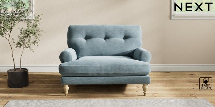 7.2.10 Erin Buttoned Back Deep Relaxed Sit Snuggle Fine Chenille Easy Clean Mid Blue High Classic Turned - Light | Made Click here to use our website with more accessibility support, for example screen readers
