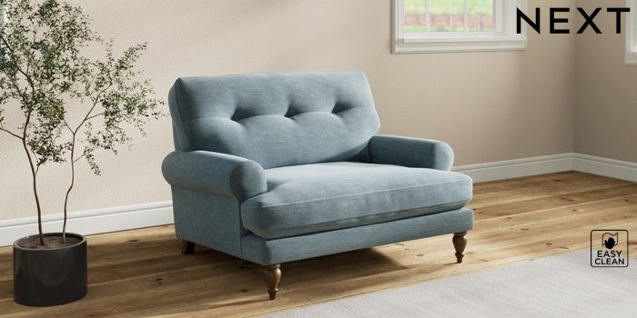 7.2.10 Erin Buttoned Back Deep Relaxed Sit Snuggle Fine Chenille Easy Clean Mid Blue High Classic Turned - Mid | Made Click here to use our website with more accessibility support, for example screen readers
