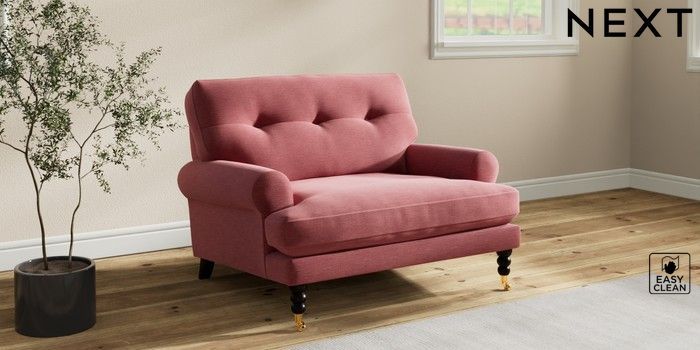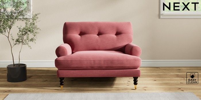 7.2.10 Erin Buttoned Back Deep Relaxed Sit Snuggle Fine Chenille Easy Clean Mid Pink High Classic Turned Brass Castor - Dark | Made Click here to use our website with more accessibility support, for example screen readers