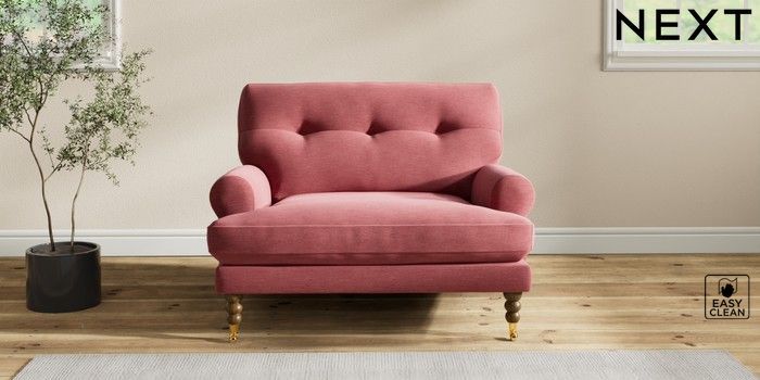 7.2.10 Erin Buttoned Back Deep Relaxed Sit Snuggle Fine Chenille Easy Clean Mid Pink High Classic Turned Brass Castor - Mid | Made Click here to use our website with more accessibility support, for example screen readers