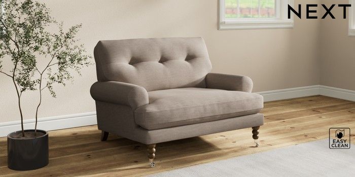 7.2.10 Erin Buttoned Back Deep Relaxed Sit Snuggle Fine Chenille Easy Clean Mid Taupe Brown High Classic Turned Chrome Castor - Mid | Made Click here to use our website with more accessibility support, for example screen readers