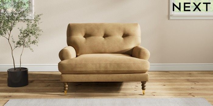 7.2.10 Erin Buttoned Back Deep Relaxed Sit Snuggle Luxe Chenille Honey Yellow High Classic Turned Brass Castor - Mid | Made Click here to use our website with more accessibility support, for example screen readers