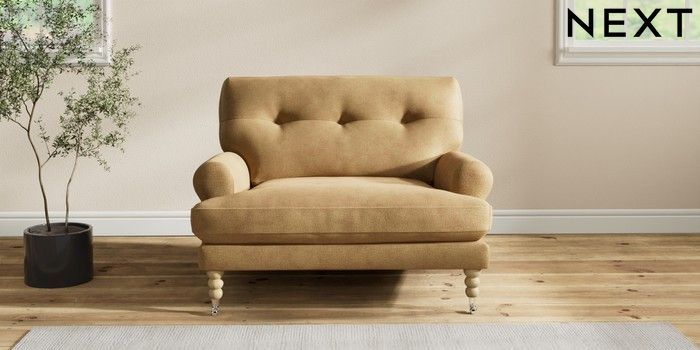 7.2.10 Erin Buttoned Back Deep Relaxed Sit Snuggle Luxe Chenille Honey Yellow High Classic Turned Chrome Castor - Light | Made Click here to use our website with more accessibility support, for example screen readers