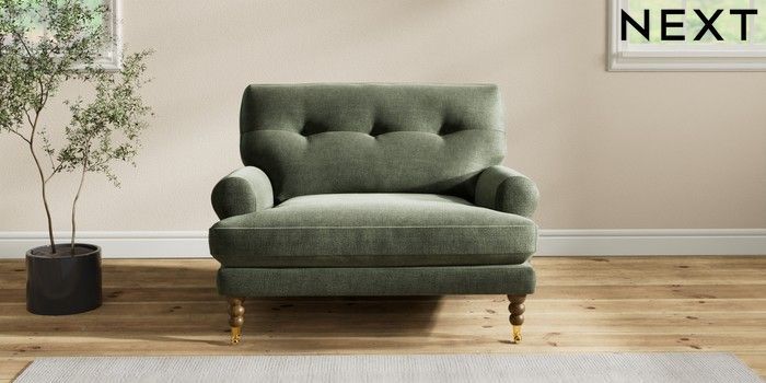 7.2.10 Erin Buttoned Back Deep Relaxed Sit Snuggle Luxe Chenille Mid Green High Classic Turned Brass Castor - Mid | Made Click here to use our website with more accessibility support, for example screen readers