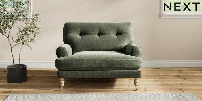 7.2.10 Erin Buttoned Back Deep Relaxed Sit Snuggle Luxe Chenille Mid Green High Classic Turned Chrome Castor - Light | Made Click here to use our website with more accessibility support, for example screen readers
