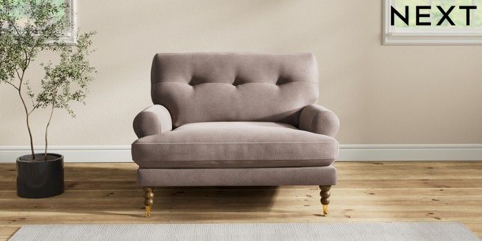 7.2.10 Erin Buttoned Back Deep Relaxed Sit Snuggle Luxe Chenille Mink Brown High Classic Turned Brass Castor - Mid | Made Click here to use our website with more accessibility support, for example screen readers