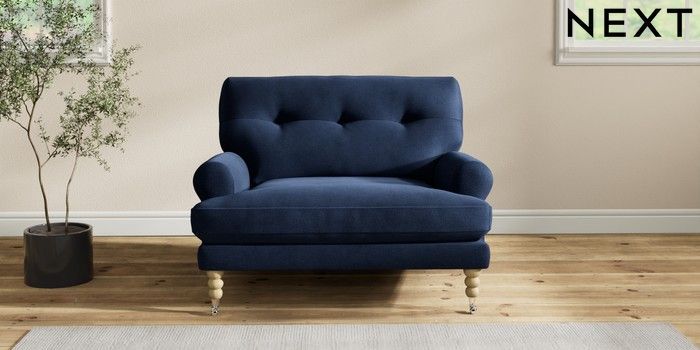 7.2.10 Erin Buttoned Back Deep Relaxed Sit Snuggle Luxe Chenille Navy Blue High Classic Turned Chrome Castor - Light | Made Click here to use our website with more accessibility support, for example screen readers
