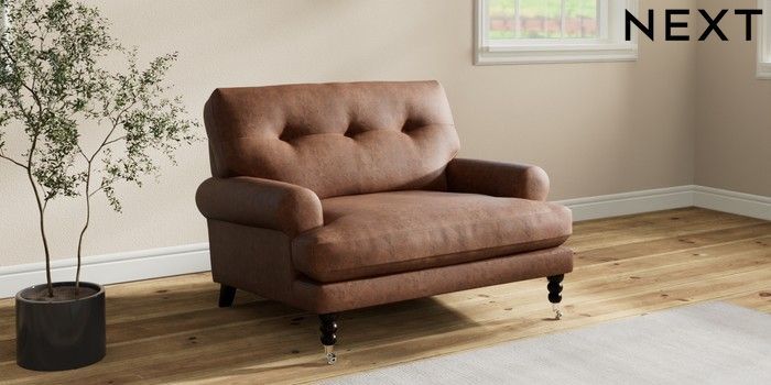 7.2.10 Erin Buttoned Back Deep Relaxed Sit Snuggle Monza Faux Leather Easy Clean Chestnut Brown High Classic Turned Chrome Castor - Dark | Made Click here to use our website with more accessibility support, for example screen readers