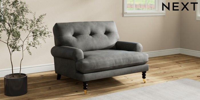 7.2.10 Erin Buttoned Back Deep Relaxed Sit Snuggle Monza Faux Leather Easy Clean Dark Grey High Classic Turned Brass Castor - Dark | Made Click here to use our website with more accessibility support, for example screen readers