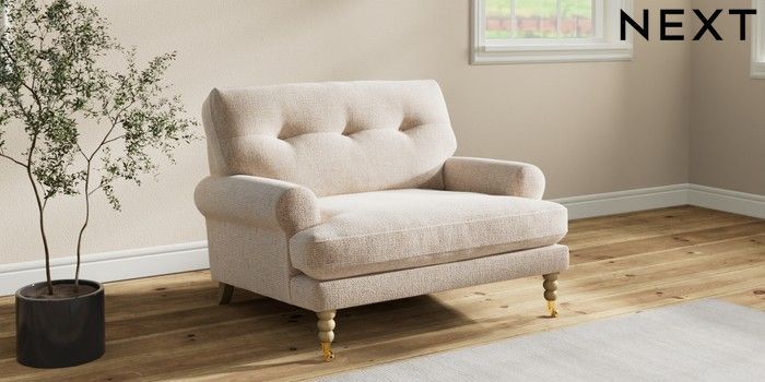 7.2.10 Erin Buttoned Back Deep Relaxed Sit Snuggle Multi Weave Mid Natural High Classic Turned Brass Castor - Light | Made Click here to use our website with more accessibility support, for example screen readers