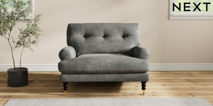 7.2.10 Erin Buttoned Back Deep Relaxed Sit Snuggle Plush Chenille Dark Grey High Classic Turned Brass Castor - Dark | Made Click here to use our website with more accessibility support, for example screen readers