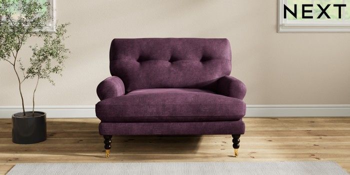 7.2.10 Erin Buttoned Back Deep Relaxed Sit Snuggle Plush Chenille Dark Plum Purple High Classic Turned Brass Castor - Dark | Made Click here to use our website with more accessibility support, for example screen readers
