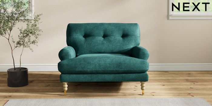 7.2.10 Erin Buttoned Back Deep Relaxed Sit Snuggle Plush Chenille Dark Teal Green High Classic Turned Brass Castor - Light | Made Click here to use our website with more accessibility support, for example screen readers