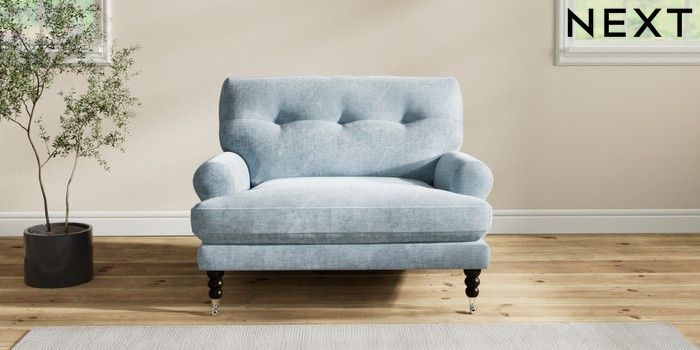 7.2.10 Erin Buttoned Back Deep Relaxed Sit Snuggle Plush Chenille Light Blue High Classic Turned Chrome Castor - Dark | Made Click here to use our website with more accessibility support, for example screen readers