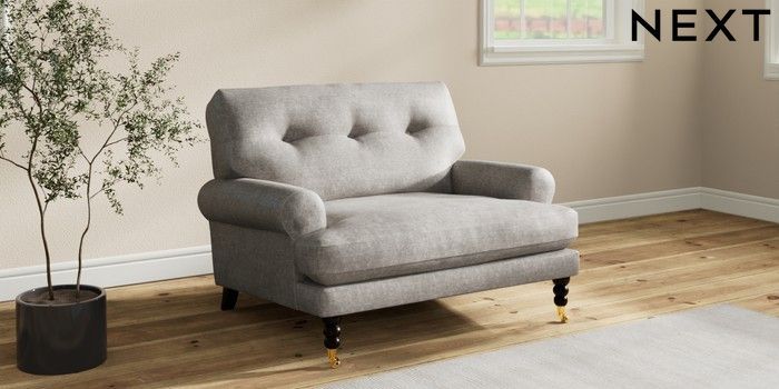7.2.10 Erin Buttoned Back Deep Relaxed Sit Snuggle Plush Chenille Light Grey High Classic Turned Brass Castor - Dark | Made Click here to use our website with more accessibility support, for example screen readers