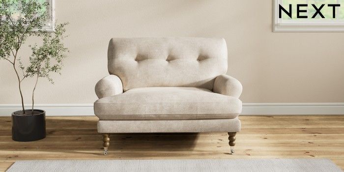 7.2.10 Erin Buttoned Back Deep Relaxed Sit Snuggle Plush Chenille Light Natural High Classic Turned Chrome Castor - Mid | Made Click here to use our website with more accessibility support, for example screen readers