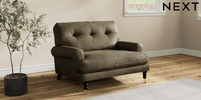 7.2.10 Erin Buttoned Back Deep Relaxed Sit Snuggle Plush Chenille Moss Green High Classic Turned Brass Castor - Dark | Made Click here to use our website with more accessibility support, for example screen readers
